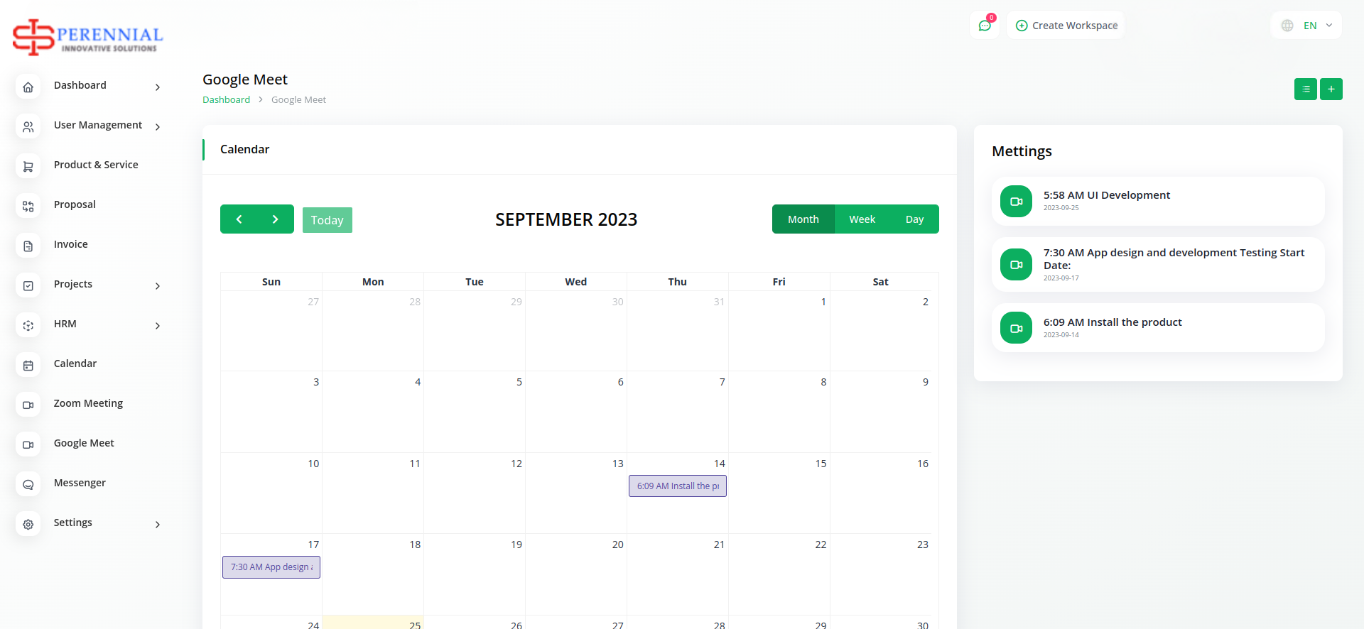 Empower your team with the ability to create and schedule Google Meet sessions instantly from within Workdo-Dash. Simplify your virtual meeting experience by seamlessly generating Google Meet links, enhancing team collaboration and communication.
