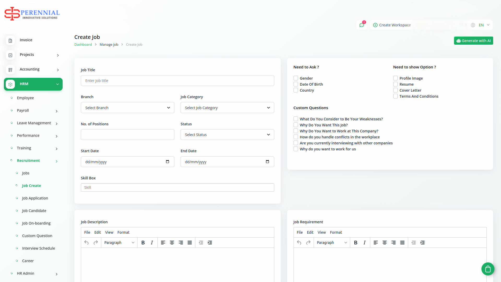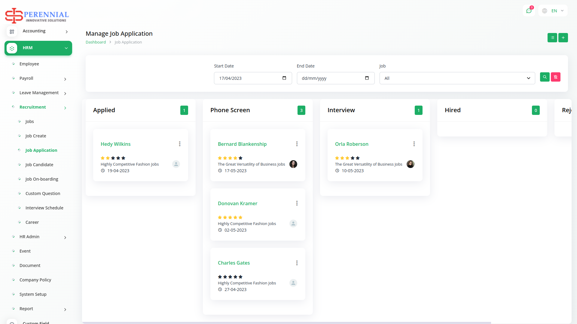 Speed up your hiring process. Use built-in hiring features to create and manage new job openings and fill your open positions faster.Depending on Hrm Module.