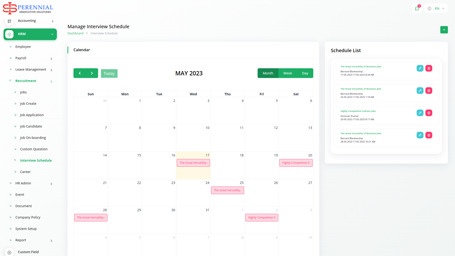 Job Post, Job application, Interview Scheduling, Custom Interview Questions, Job Onboarding, Unique link for applying for a job