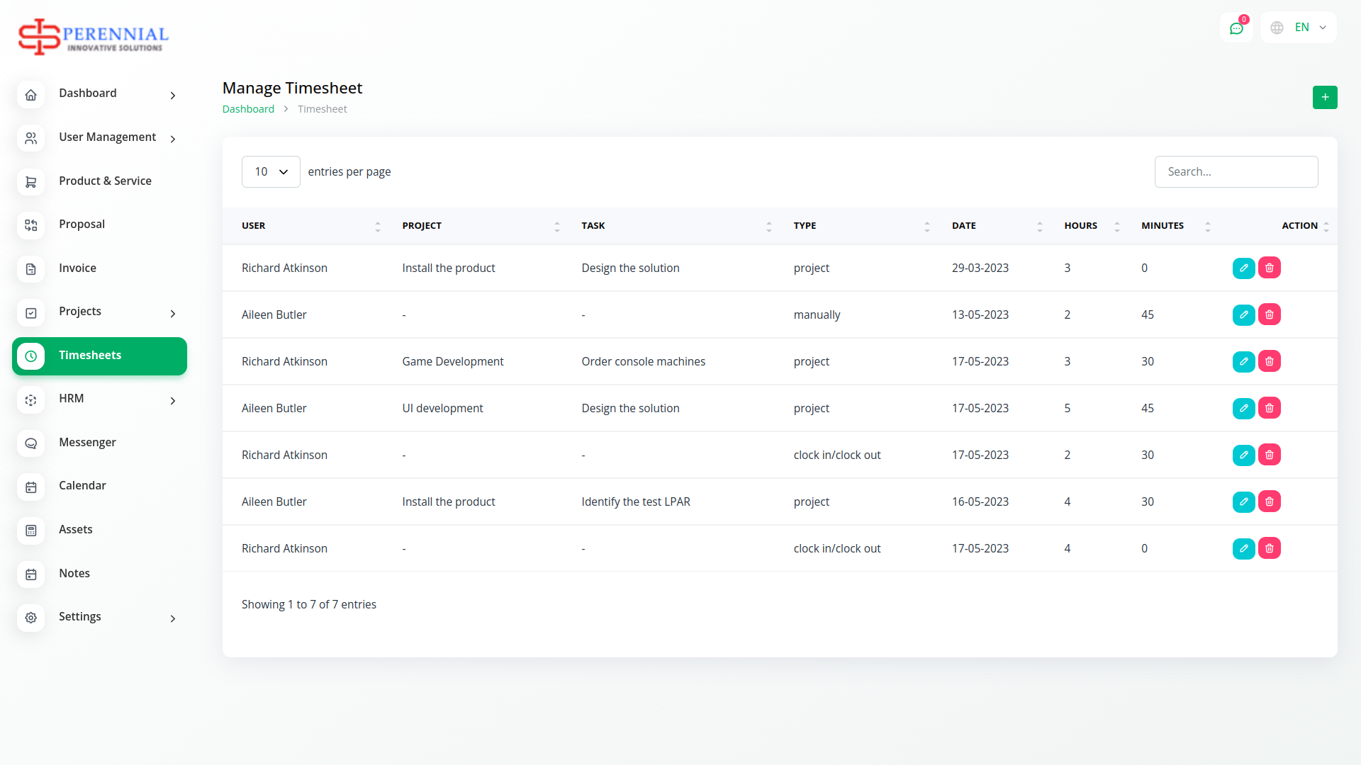 Create a timesheet by assigning Projects, Tasks, and Users. Assign a starting and ending date as well as a time. This allows you to manage your project most efficiently.