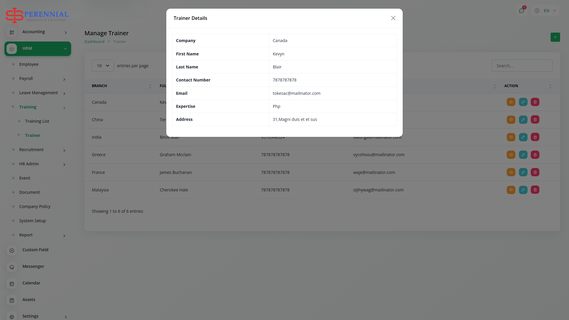 Employee training is quintessential in modern organizations. You can keep a tab on training activities by assigning a cost, duration, training, and training mode for each employee. Keep the list of your trainers handy through the easy listing.